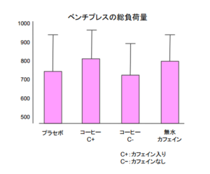 その結果、スクワットとベンチプレスの両方ともカフェイン入りのコーヒーを飲んだ時が一番送付か荷量が高かったことが分かりました。