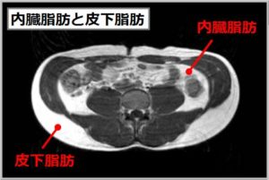 それに対して、内臓脂肪とはお腹の中の腹筋と内臓器の空間に脂肪がたまっていくものを言います。