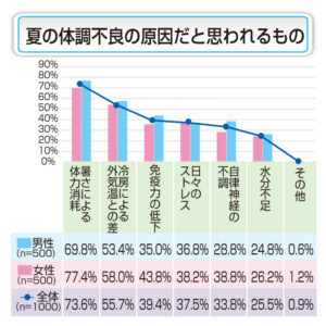 なんと、夏の体調不良の原因に冷房を上げている人が多くいました。