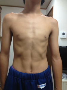 それほどムキムキというわけではありませんが腹筋がうっすら割れていますよね。